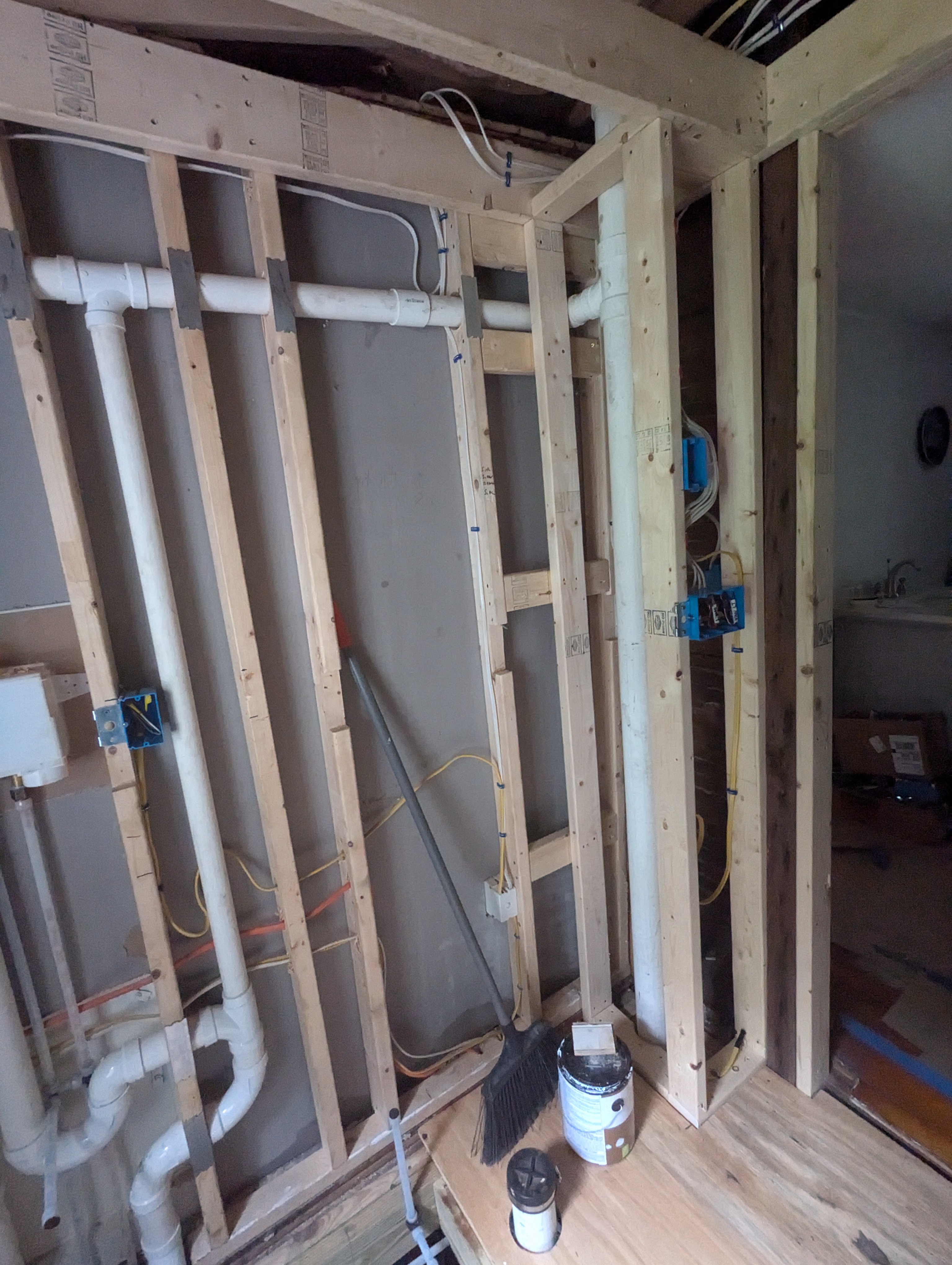 A a vent stack pipe in the corner! Super exciting because up until this point my house hasn't met code. This fixes a huge problem.